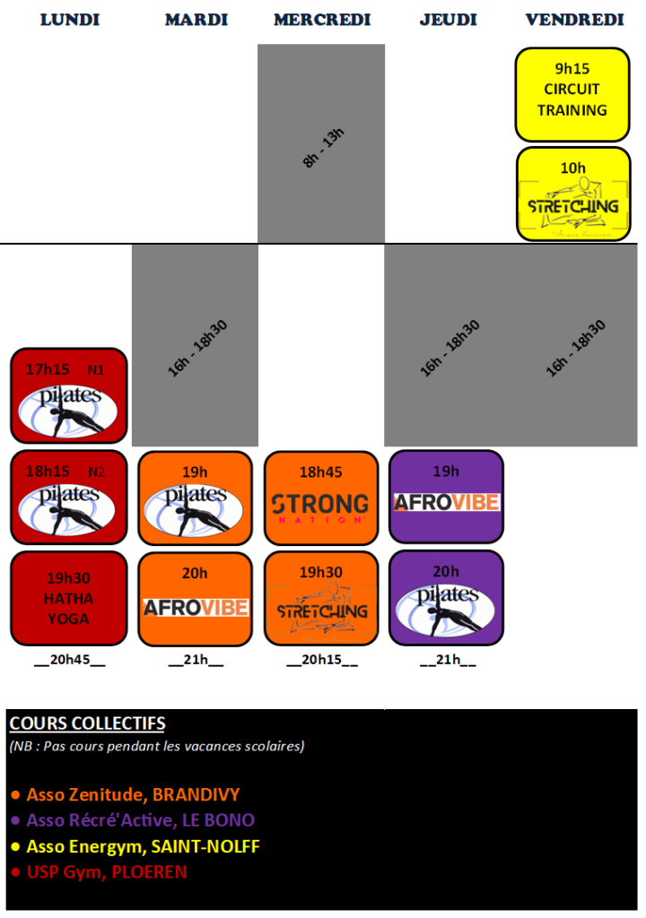 Vous pouvez me retrouver dans ces clubs sportifs, situés dans le secteur de VANNES (56) : Ploeren, Le Bono, Brandivy, Saint-Nolff.